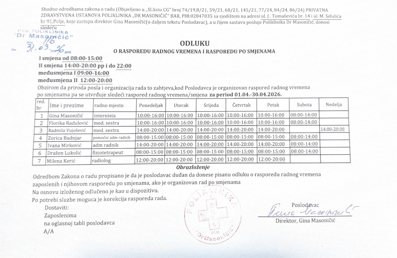 U okviru Privatne zdravstvene ustanove – Poliklinike “Dr Masoničić, pacijentima je omogućen pregled interniste kao i dijagnostika neophodna za liječenje i sagledavanje cjelokupnog zdravstvenog stanja.