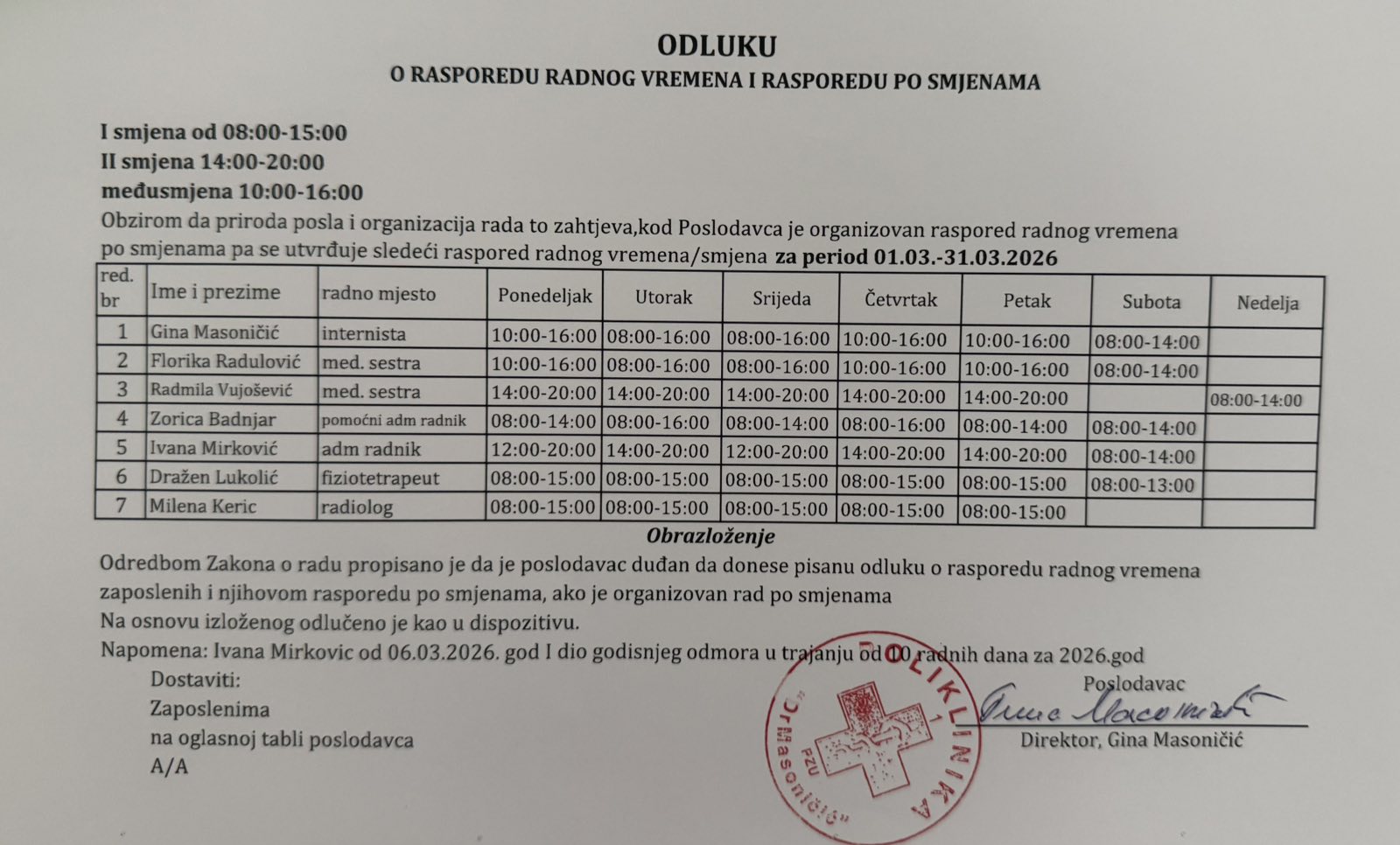 Raspored rada MART 2026.